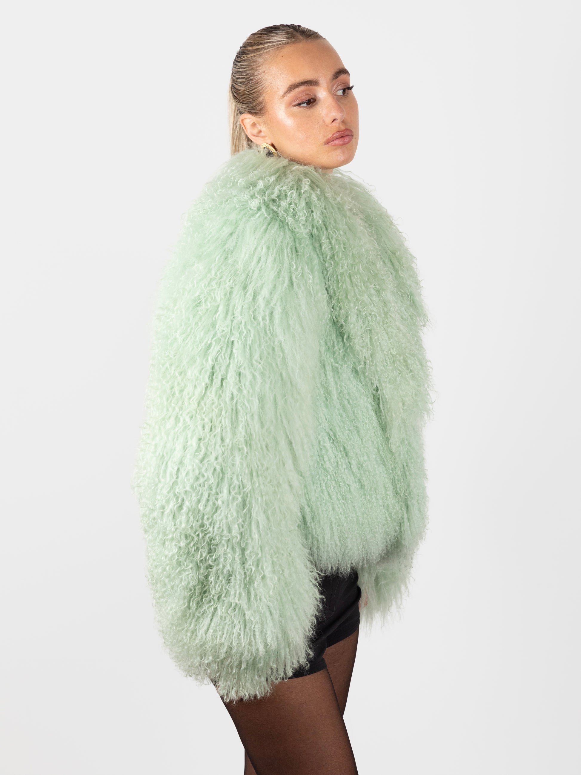 Mongolian Fur Coat- Mint Green (Made to order)