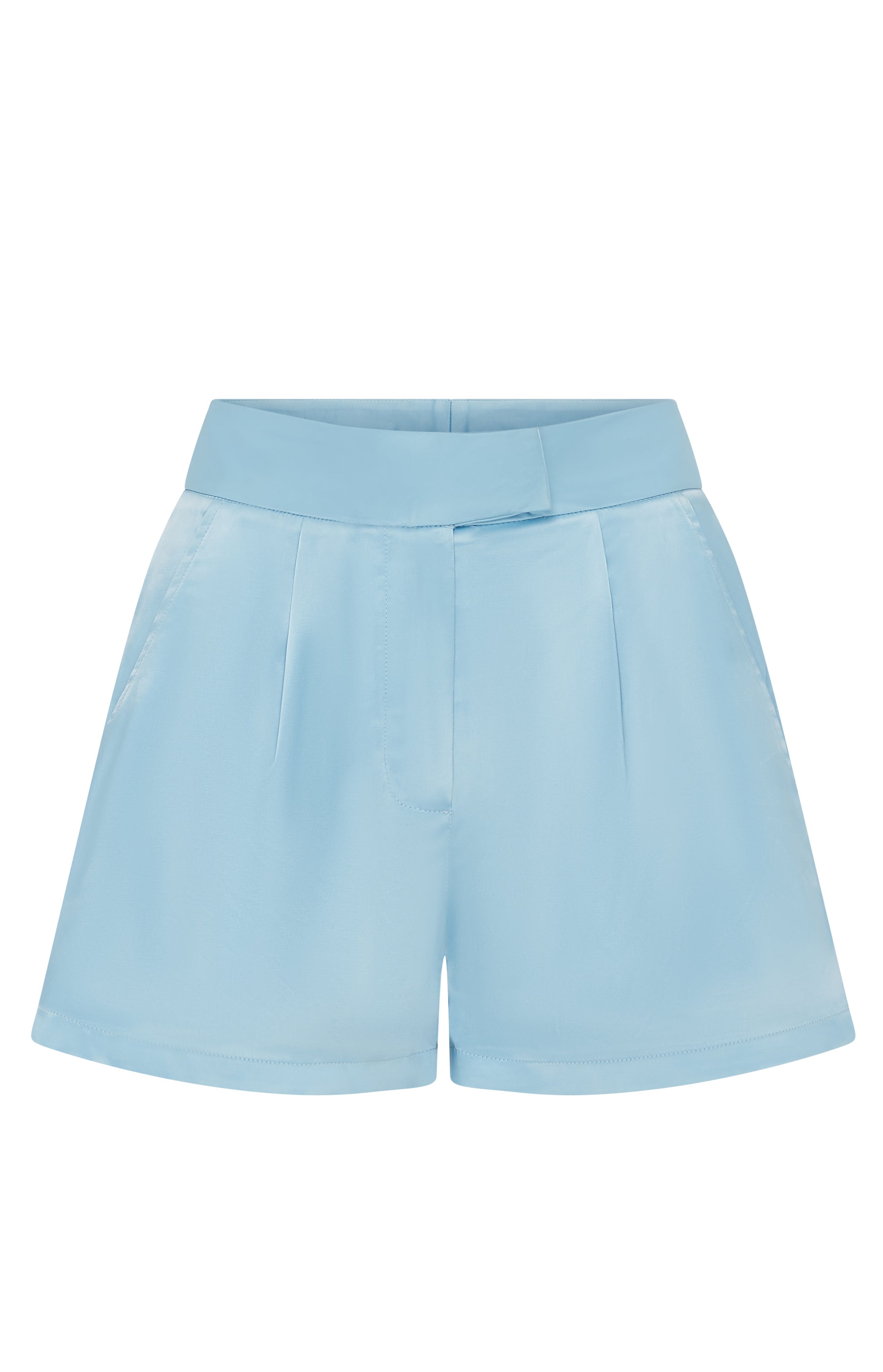RUBY SHORTS- Blue - Experience the comfort and sophistication of our ‘Ruby’ shorts. Designed with premium satin these shorts are perfectly tailored with a high waisted fit and A-line shape to accentuate your curves, providing you with a flattering silhouette.