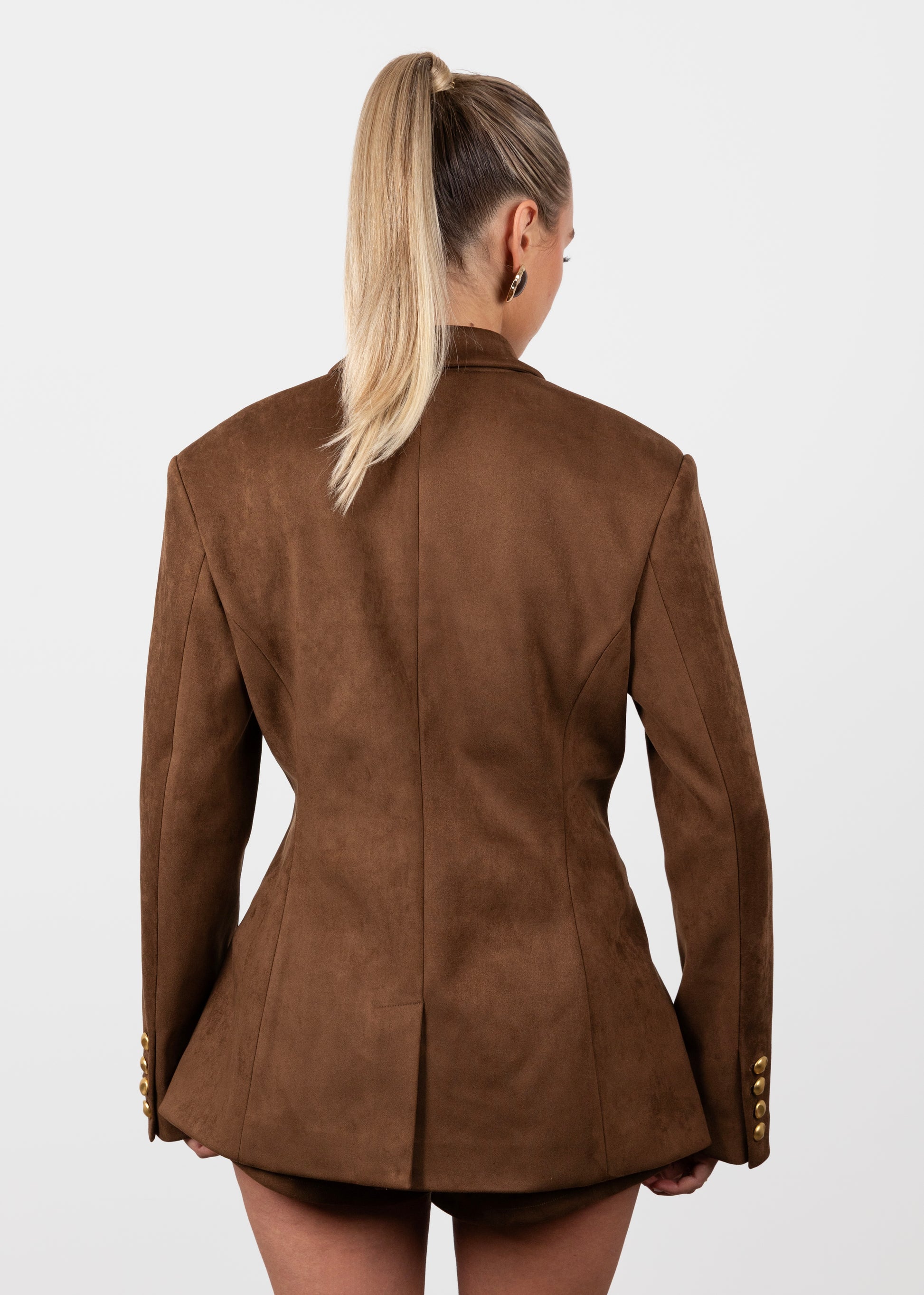 Suede Cinched Blazer - Brown (Pre-Order)